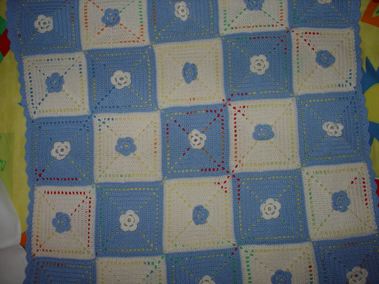 colcha azul y blanca a crochet