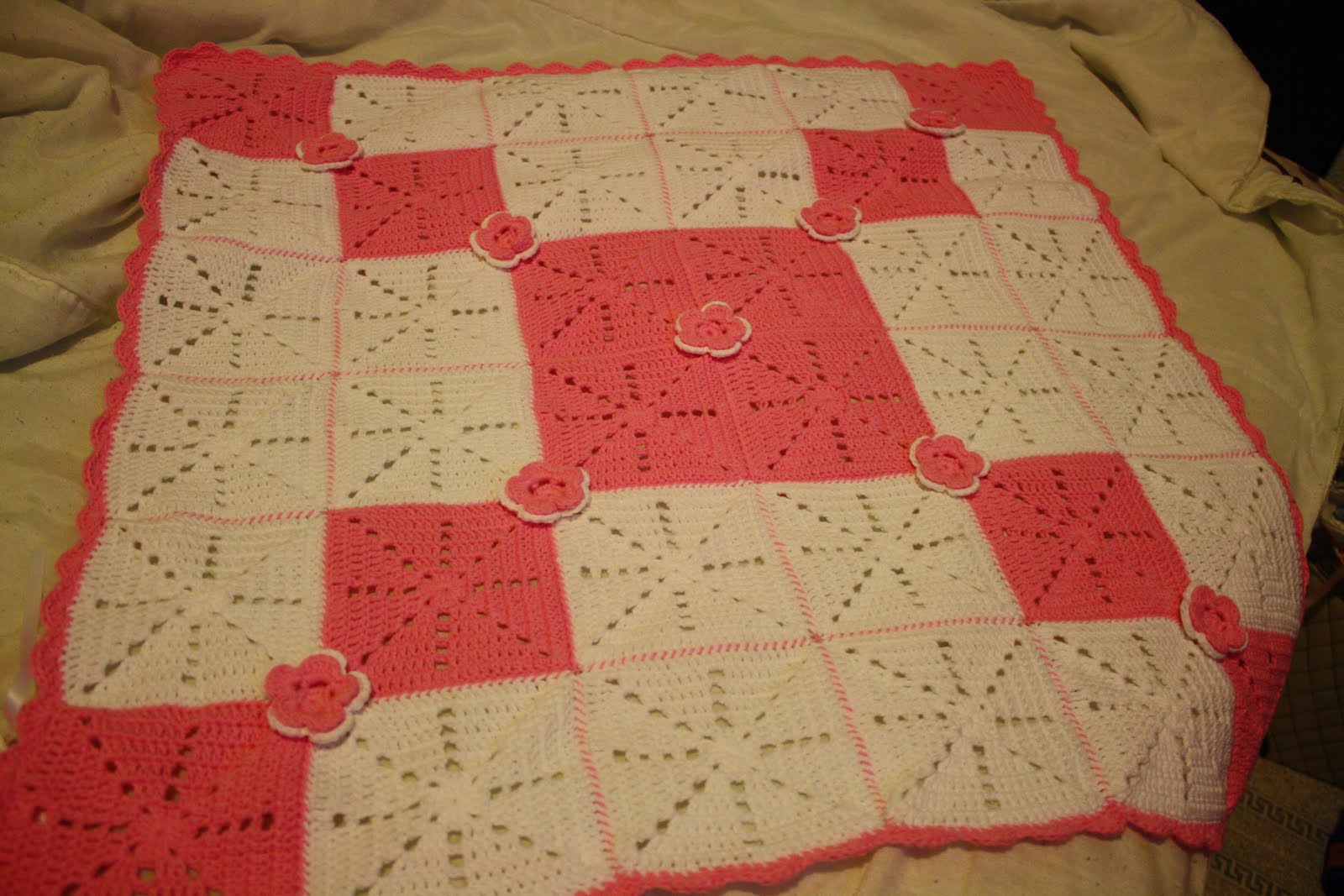 manta rosa y blanca a crochet