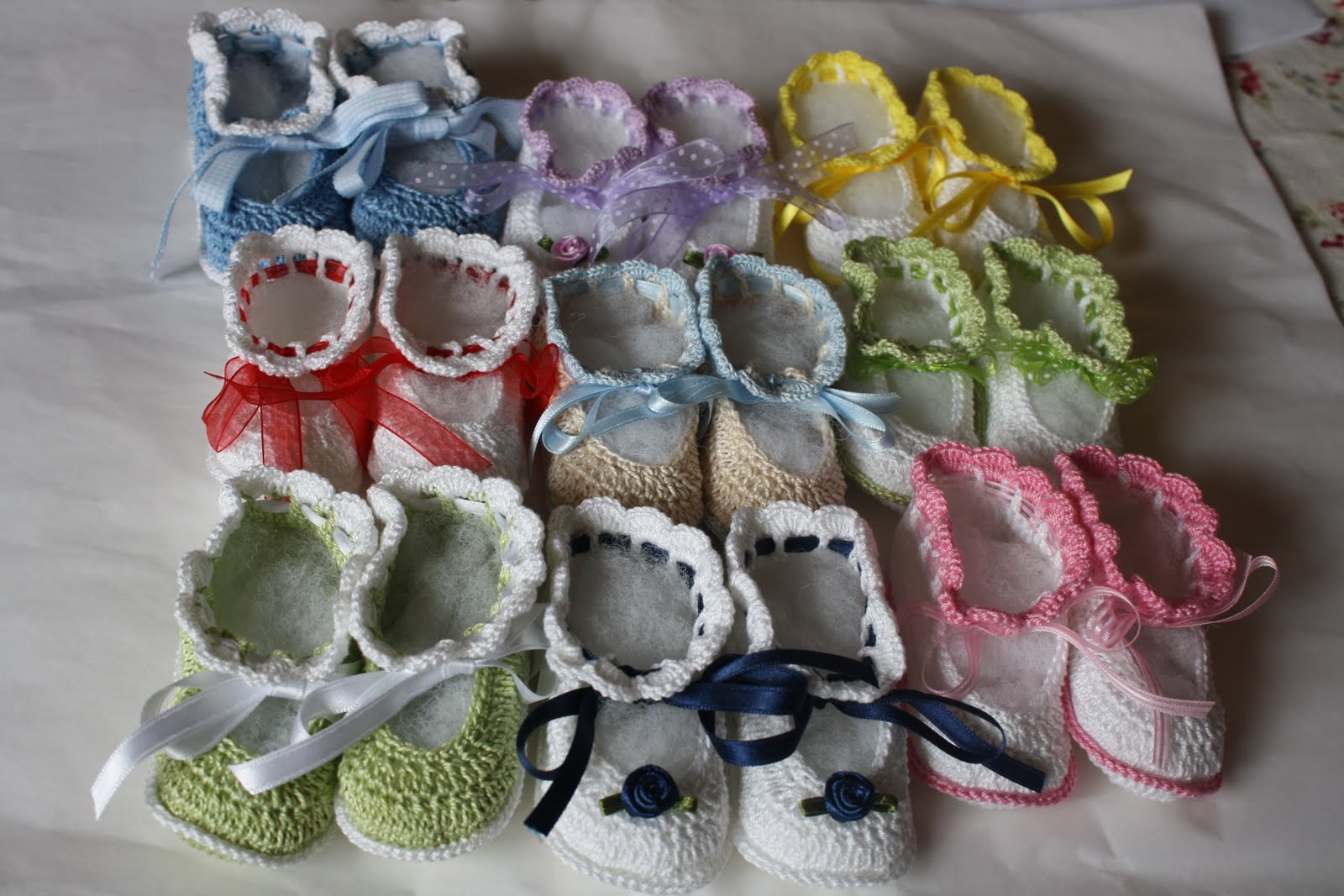1. Estan bellísimos esos zapatitos tan tiernos. Felicitaciones.Qué pena que sea tan torpe yo, con el crochet.....pues se pueden hacer miles de cositas tan bellas. Y con la ilusión que tengo; ya que voy a ser abuela......y no saber o poder hacer nada con crochet.....ya que cuando lo he intentado, pues no domino la tensión igual de la hebra de hilo o lana y siempre no me salen iguales los tejidos.......Pero eres una Hada con el tejido a crochet y el punto cuz. A cuidar esa manitas y a seguir con la creatividadad. Un fuerte abrazo desde Perú.