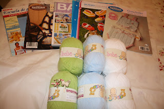 | UNAS BONITAS REVISTAS Y LANA PARA HACER ZAPATITOS Y MAS COSITAS PARA LA CANASTILLA |