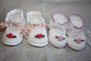 Vaya zapatitos más monos, me encantan los lacitos que les has puesto! Un regalo precioso para Valeria, su madre estará feliz! Todo es precioso. Un abrazo.