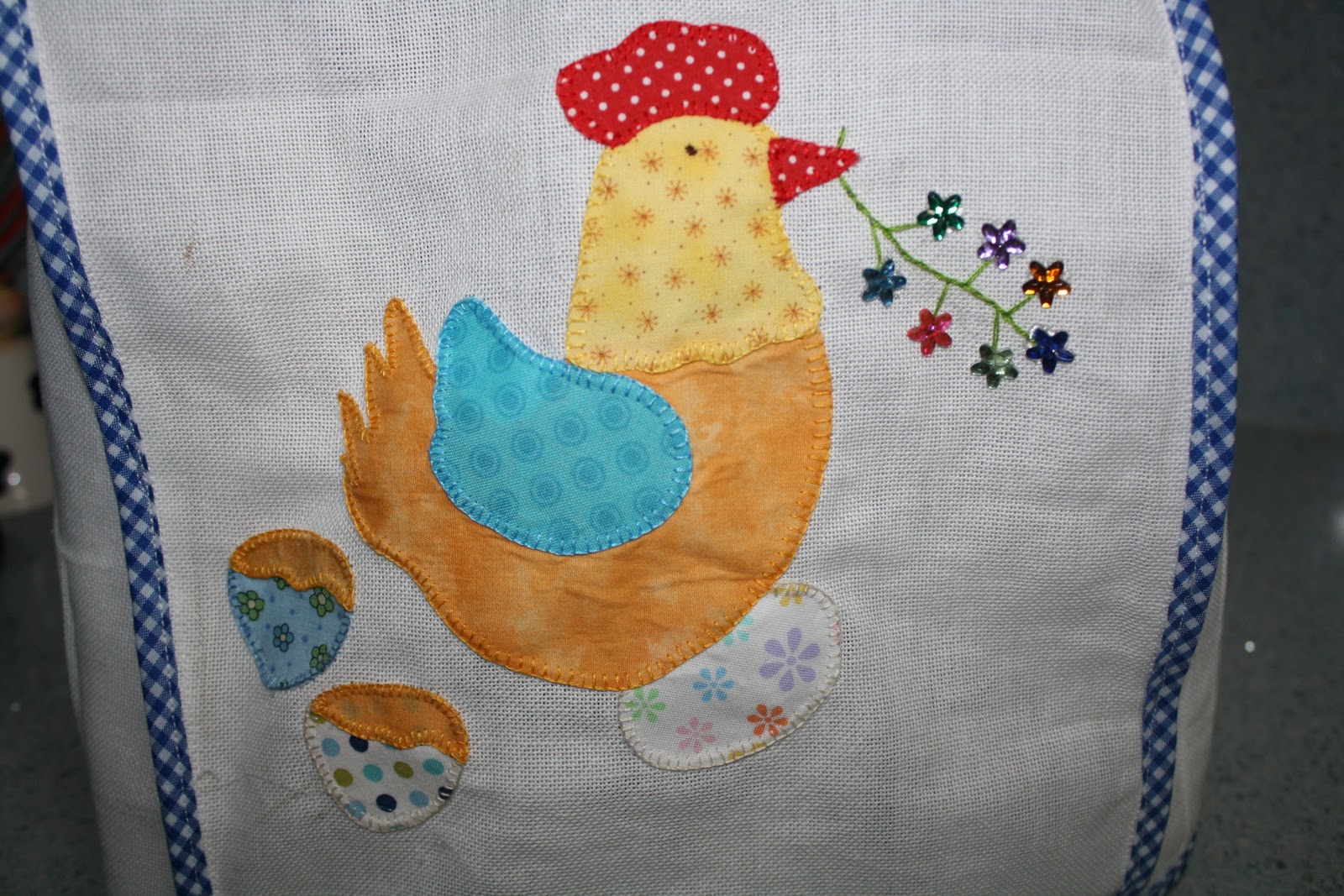Pero, qué chula te ha quedado! Estás hecha una experta en patch, no hay nada que se te resista! La gallinita es preciosa, muy apropiada para la maquinita. Besos.
